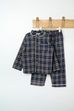 Pijama Cuadro Beige Cuello Volante Manga Larga