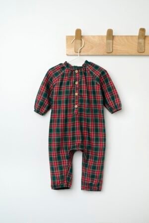 Pelele Bebé Cuadro Rojo Verde Manga Larga
