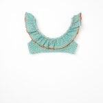 Ruffled bikini top made from recycled polyamide fabric, featuring our flattering tie print.