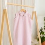 Sleeveless nightdress/dress with collar, made from 100% organic cotton double gauze with delicate plumeti.