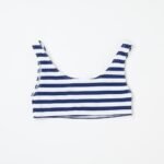 Navy striped swim top in comfy polyamide fabric, resistant to sun and chlorine — perfect for endless summer splashes.