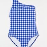 Bañador con estampado vichy azul súper favorecedor y escote asimétrico que estiliza al máximo.