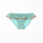 Nuestra braguita más monita, con volantes y un estampado corbatero en color turquesa con detalles coral que la hace única. Está confeccionada en un tejido de secado rápido y con protección solar y resistente al cloro, perfecta para disfrutar del agua sin preocupaciones.