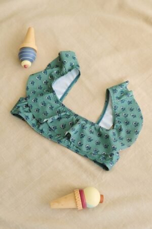 Tejido sostenible, cómodo, de secado rápido y resistente al sol y al cloro. Ideal para monitas que saltan, corren y no paran ni un segundo.