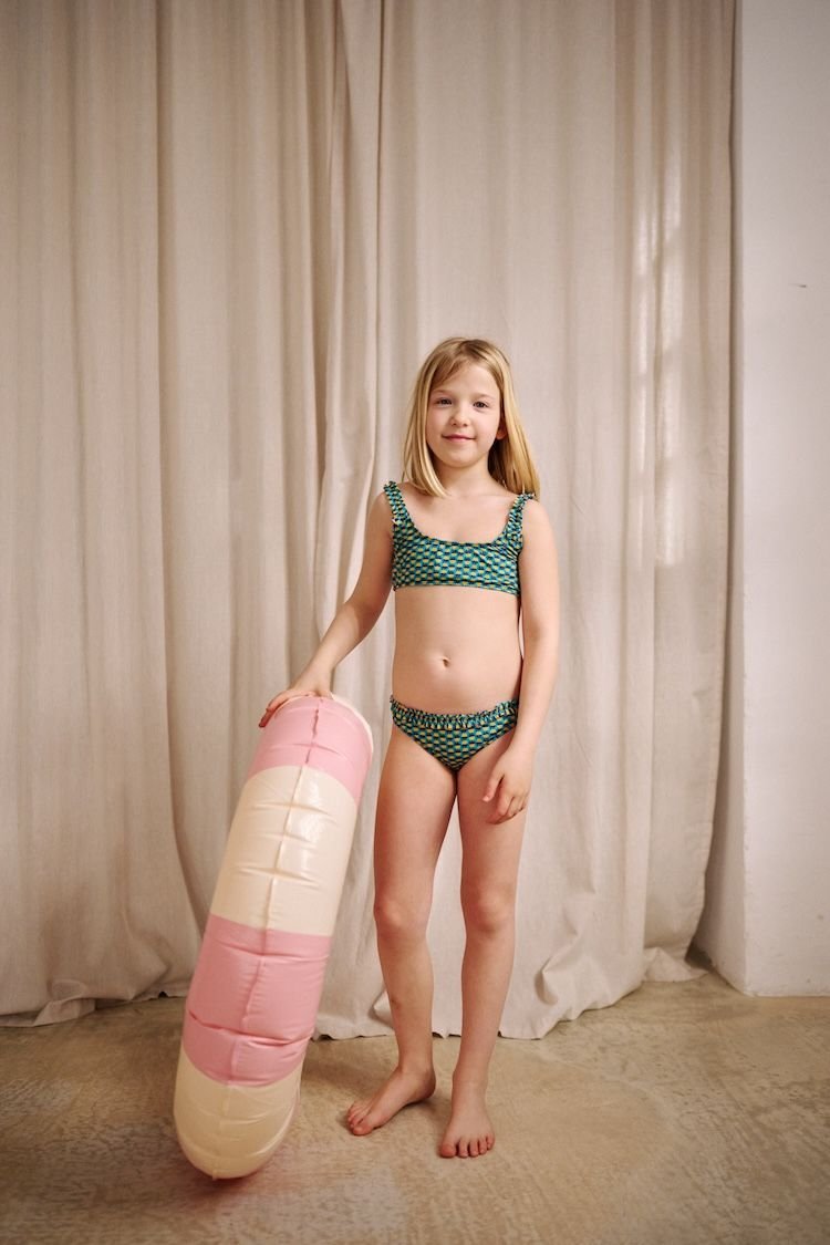 De corte cómodo y favorecedor, se adapta al movimiento para que puedan jugar sin parar. El volante en la cintura añade ese toque dulce que marca la diferencia 💚