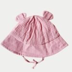 Gorro de verano para bebé confeccionado en bambula de algodón, un tejido suave, ligero e hidrófilo, ideal para mantener la cabecita fresca y protegida del sol.