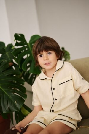 Pelele corto de bambula 100% algodón orgánico, con pantalón y manga corta, ideal para los días más calurosos.