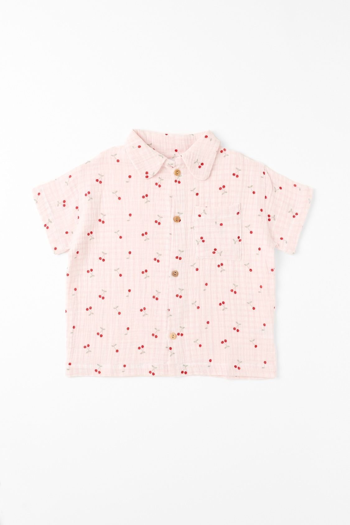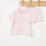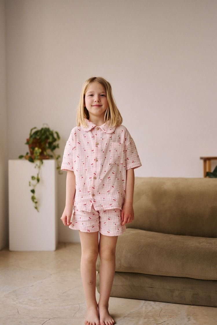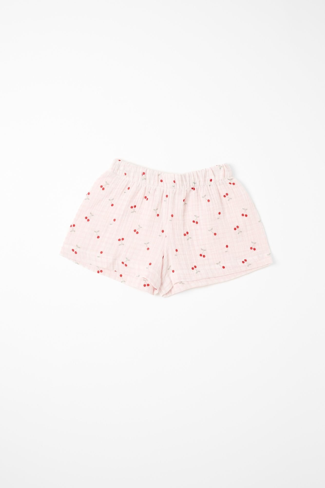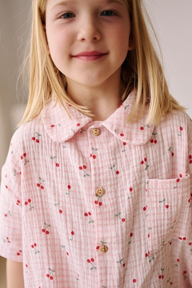 El pijama Cerezas en tejido bambula es dulce y veraniego a partes iguales. Su estampado de pequeñas cerezas sobre fondo rosa suave aporta un aire dulce y alegre, perfecto para las noches de verano 🌸
