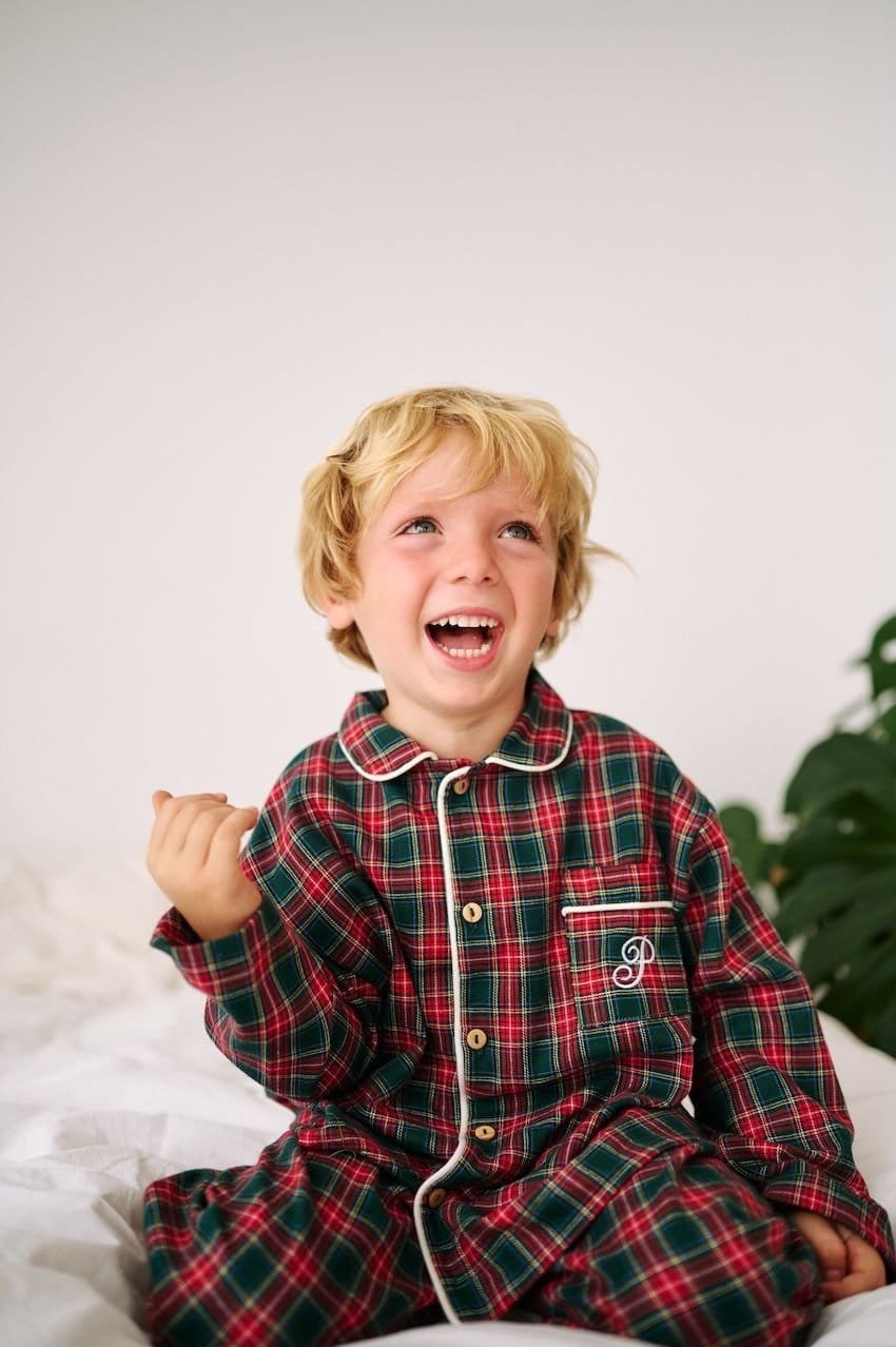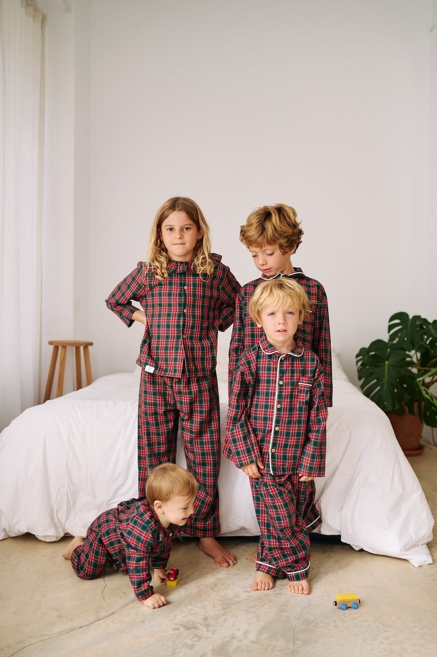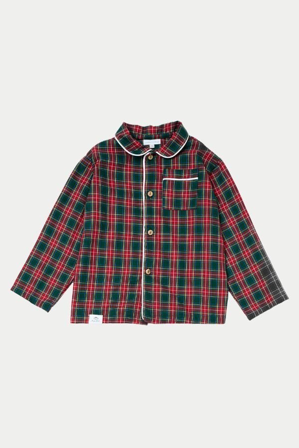 Nuestro pijama camisero ahora en tartán rojo y verde. Combina tradición, confort y sostenibilidad a partes iguales.