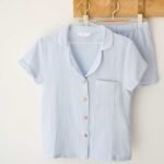Pijama camisero de dos piezas, con pantalón corto y camisa de manga corta, ideal para las noches de primavera y verano.