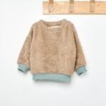 Sudadera de pelo con puños y bajo de canalé turquesa. Ideal para looks desenfadados y calentitos.