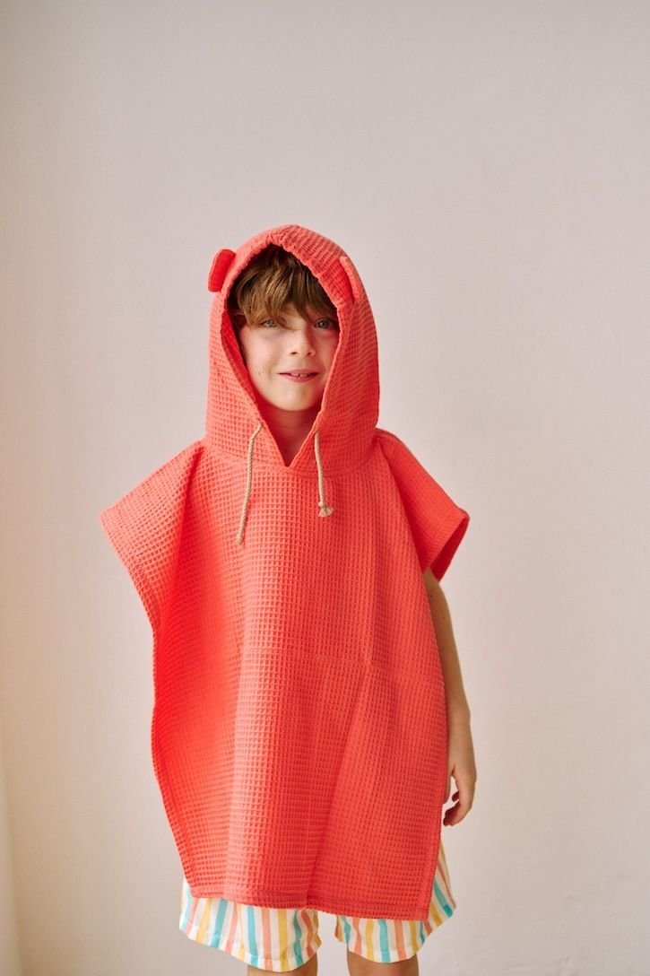 La toalla estilo poncho que todo monito de la selva necesita para sus aventuras en la playa, la piscina o los lagos más recónditos.