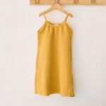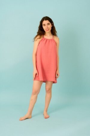Vestido veraniego confeccionado en bambula 100% algodón orgánico, disponible en color coral o mostaza.