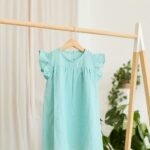 Vestido/camisón con manga volante, confeccionado en bambula 100% algodón orgánico con delicado plumeti.